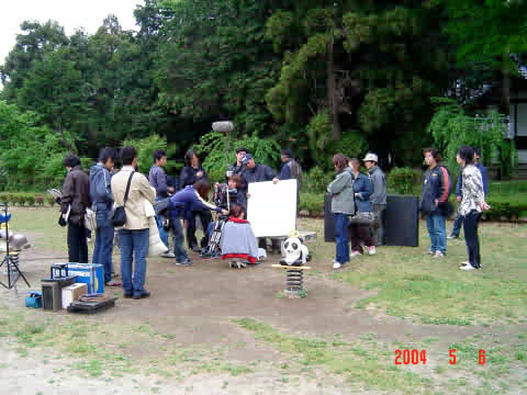 本庄総合公園では、朝早くからエキストラが待機