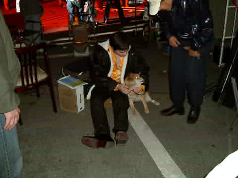 主役の犬、深夜の撮影で疲れぎみ