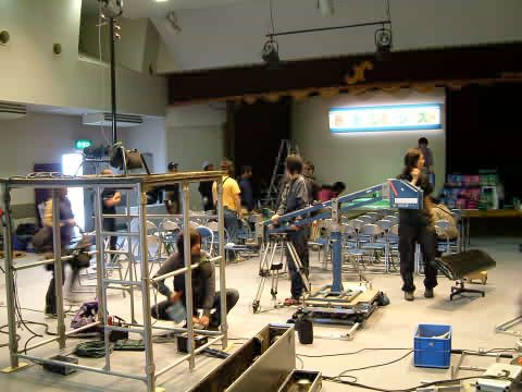 商工会議所のホールでは、セットづくり
