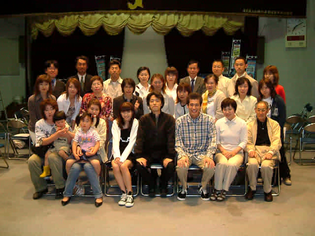エキストラの記念写真、監督も真中でにっこり