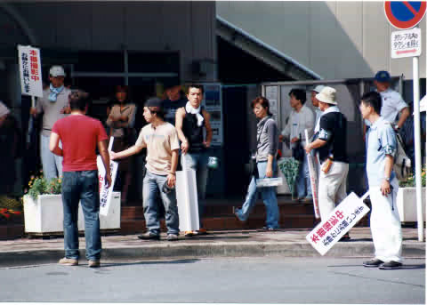 本庄駅前では、本番に備えて、FCのスタッフが「お静かに」の看板を持って配置
