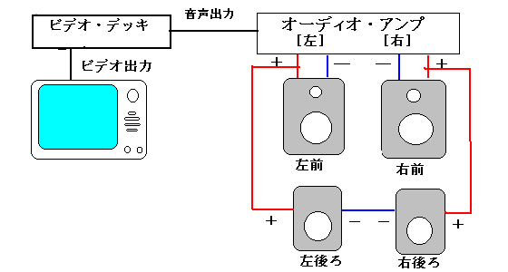ステレオなどの大きなスピーカーでゆとりのある音を出すことです。後ろは小さくても良い。