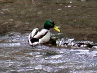 「泉門池」近くの川で泳いでいるマガモを10倍ズームで撮りました。