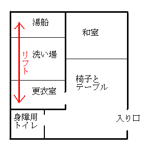 軽度の身障者は、大浴場にある洗身用の椅子と浴槽の手すりで大丈夫。