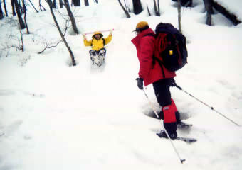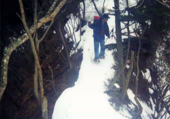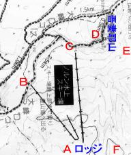 BとCの中間。スキー場の端を歩いて、最初の一休み。