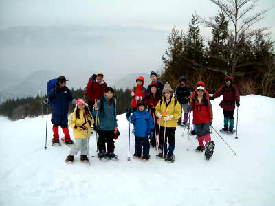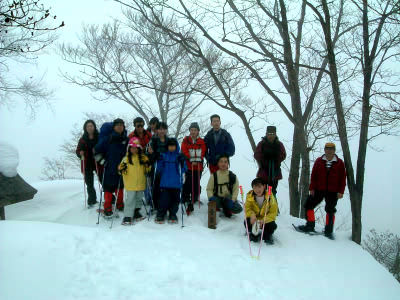 山頂での記念写真。背景には幻の10名山が。雨だぁ!