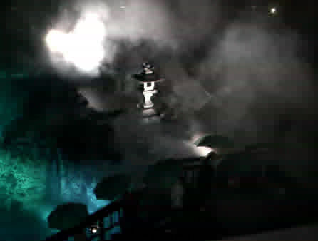 石灯籠も幻想的に。緑の雨傘を撮したのですが光量不足。