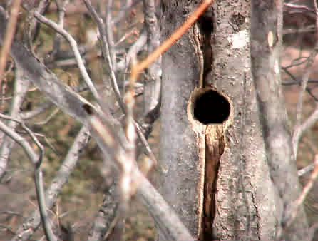 きつつき系の鳥が空けた穴に、何かが住み着いているかも。