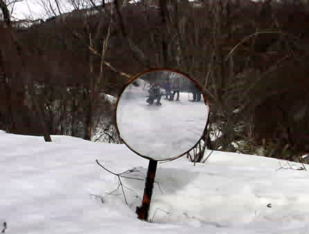 このカーブミラーは、元々あまり高くない位置にあるそうです。