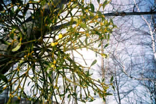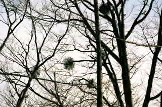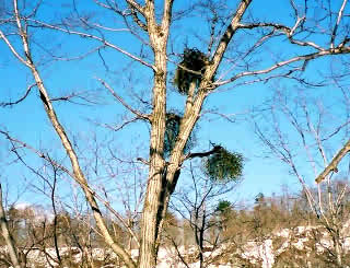 甘い実を鳥が食べると、粘って木の上に付くとか。