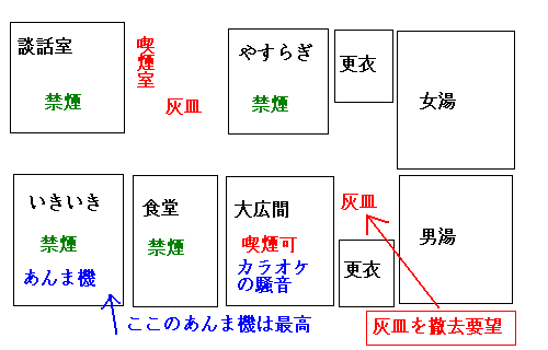 ユートピア赤城では、温泉に入る行動動線の「更衣室前の待合い」に灰皿
