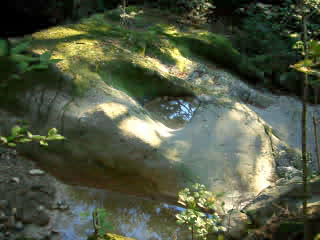 金時の宿り石。この岩の洞窟の中で暮らしていたという伝説も。