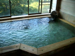 湯の花の混じったにごり湯のかけ流し(温度調整のため一部加水)も