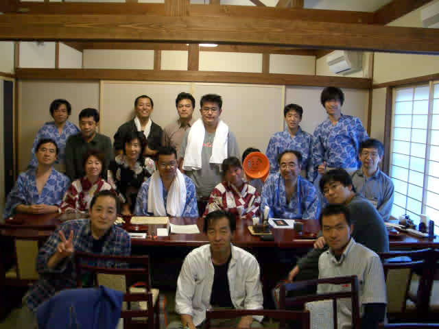 食事の前に全員で記念写真。誰だ、顔がケロリンになっているのは。