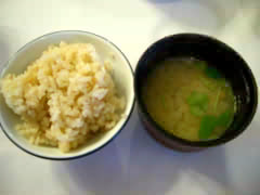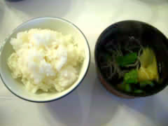 里芋の炊き込みご飯と味噌汁 白米と澄まし汁 私は両方食べました