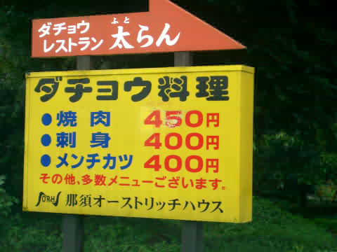 道に「ダチョウ丼380円」という掲示があったので、見学してきました。