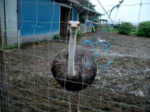 だちょうは人なつっこく、すぐに寄ってきます。ちょっと臭い。