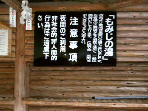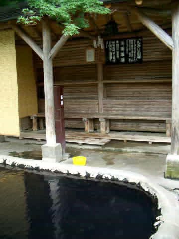 左の手摺り部分が遊歩道で、勇気が無いと入れません。脱衣所もすだれだけ。